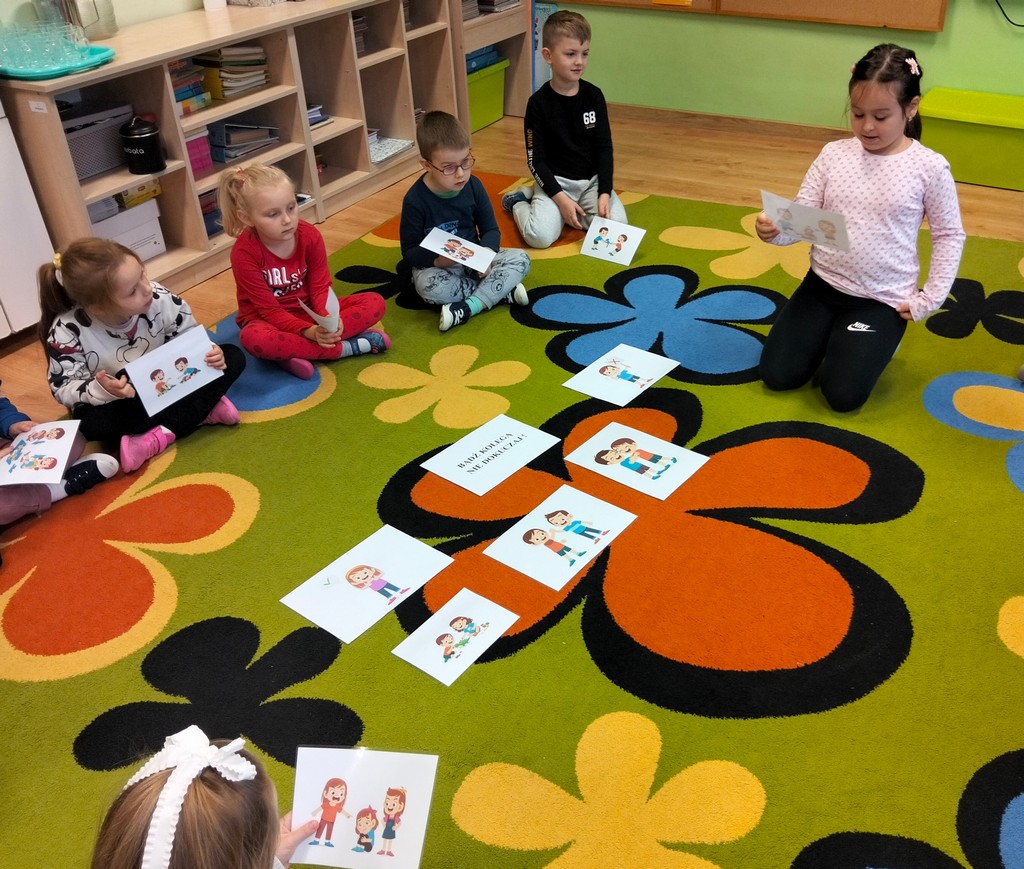 Przedszkole bawiło się w grupach. Wychowawczynie przeprowadziły tematyczne zajęcia podczas, których dzieci budowały dobre relacje w grupie rówieśniczej.