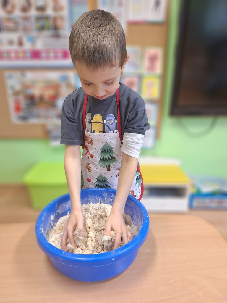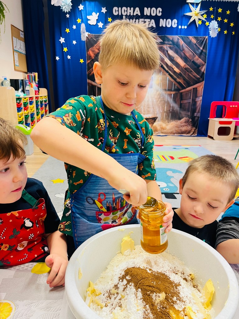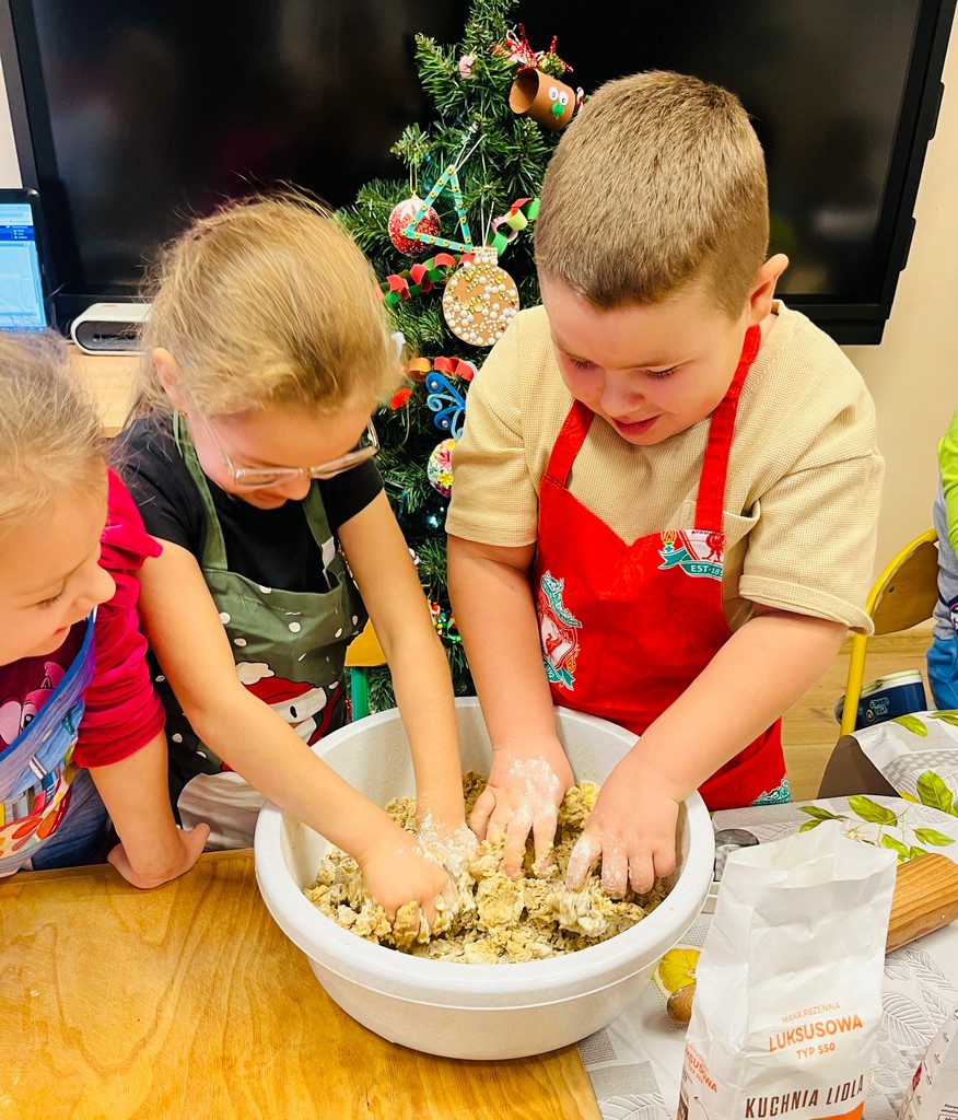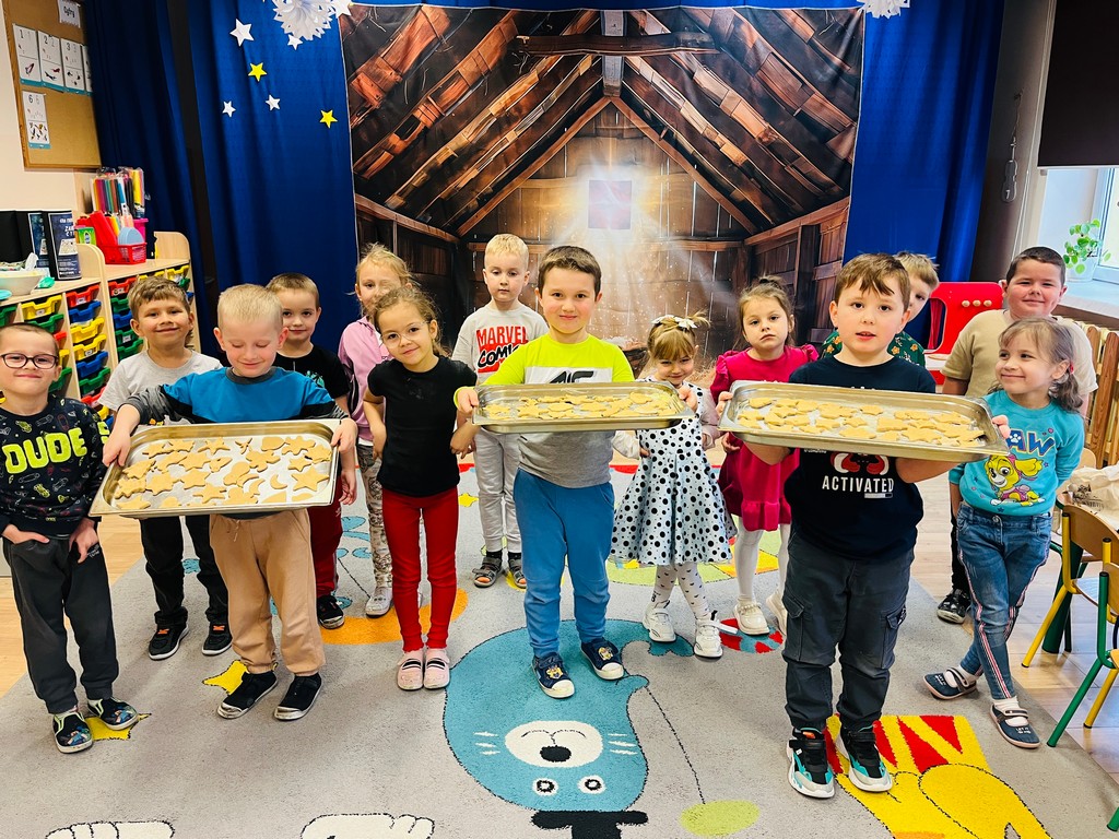 W naszym przedszkolu zapanowała prawdziwie świąteczna atmosfera! Dzieci wszystkich grup wzięły udział w wyjątkowych zajęciach – wspólnym pieczeniu pierników. Już od samego rana w salach unosił się cudowny zapach korzennych przypraw, który wprowadził wszystkich w radosny, zimowy nastrój.