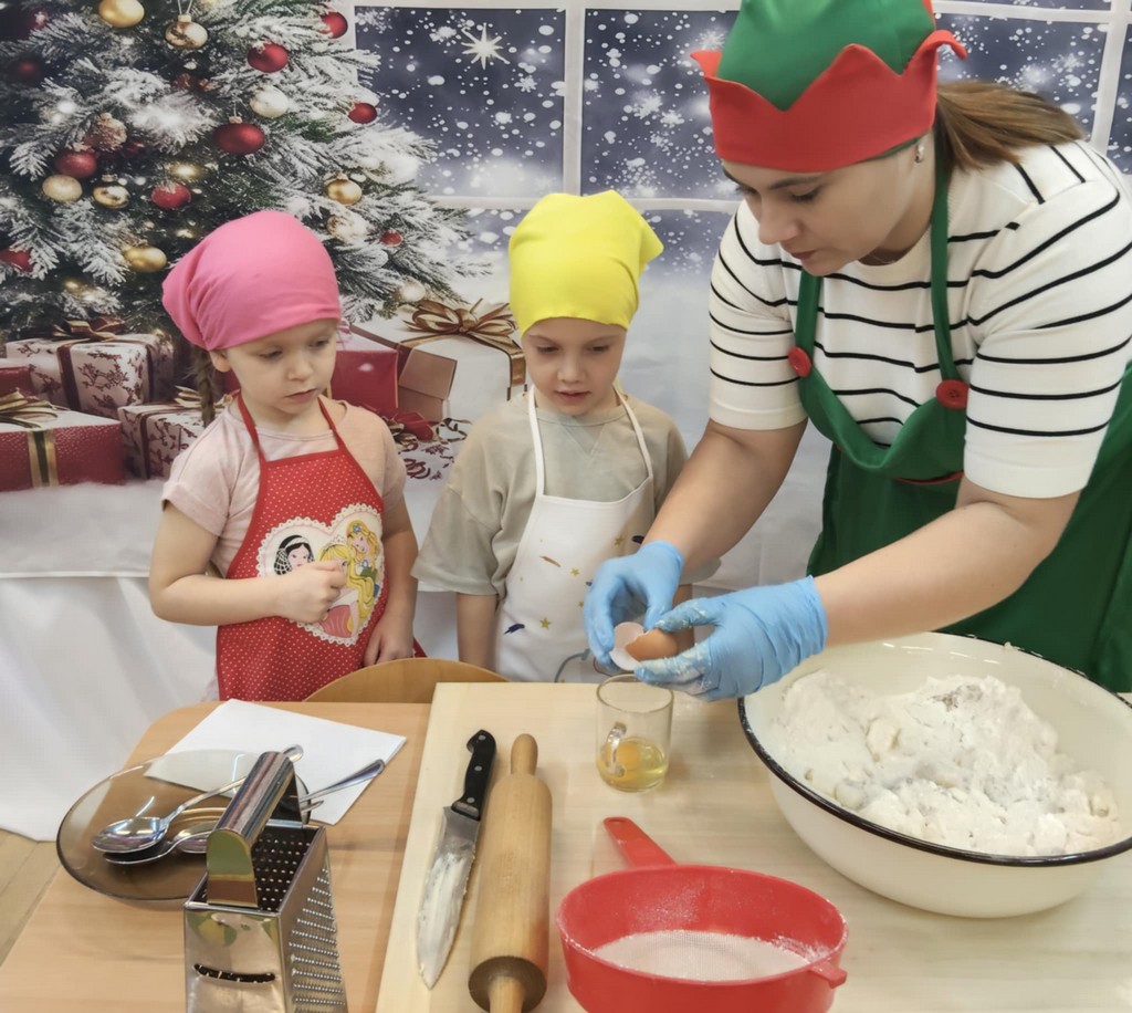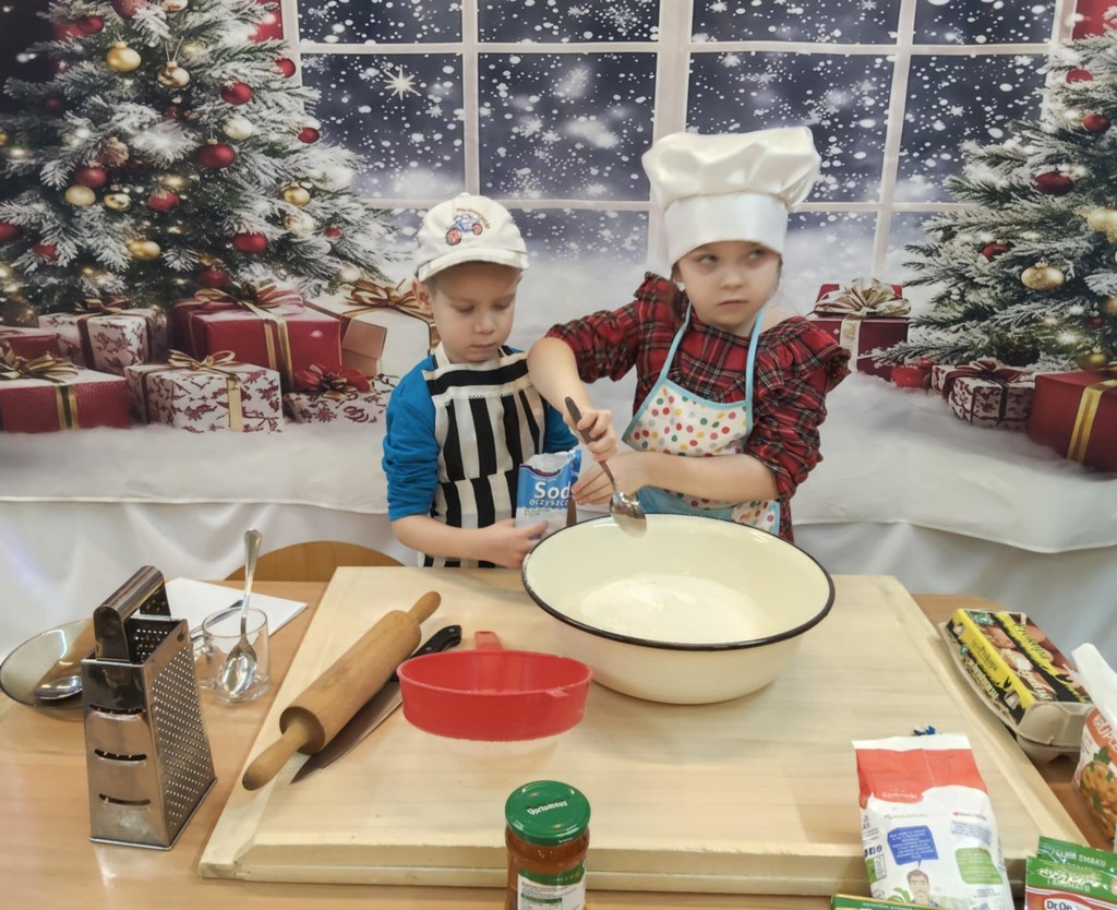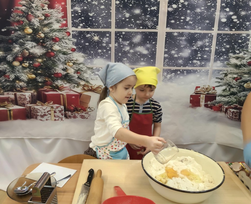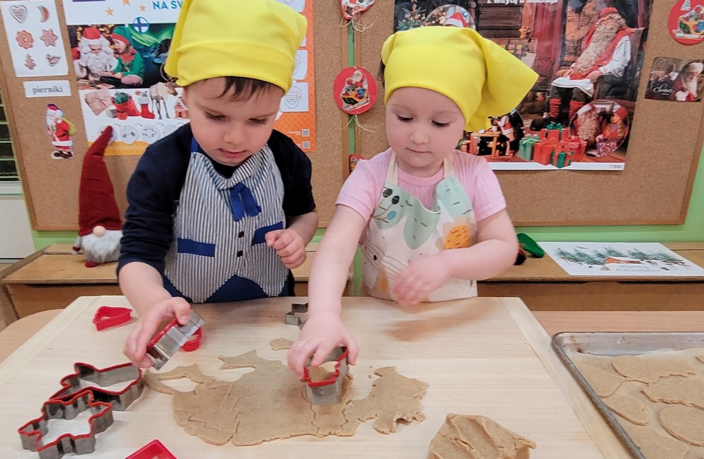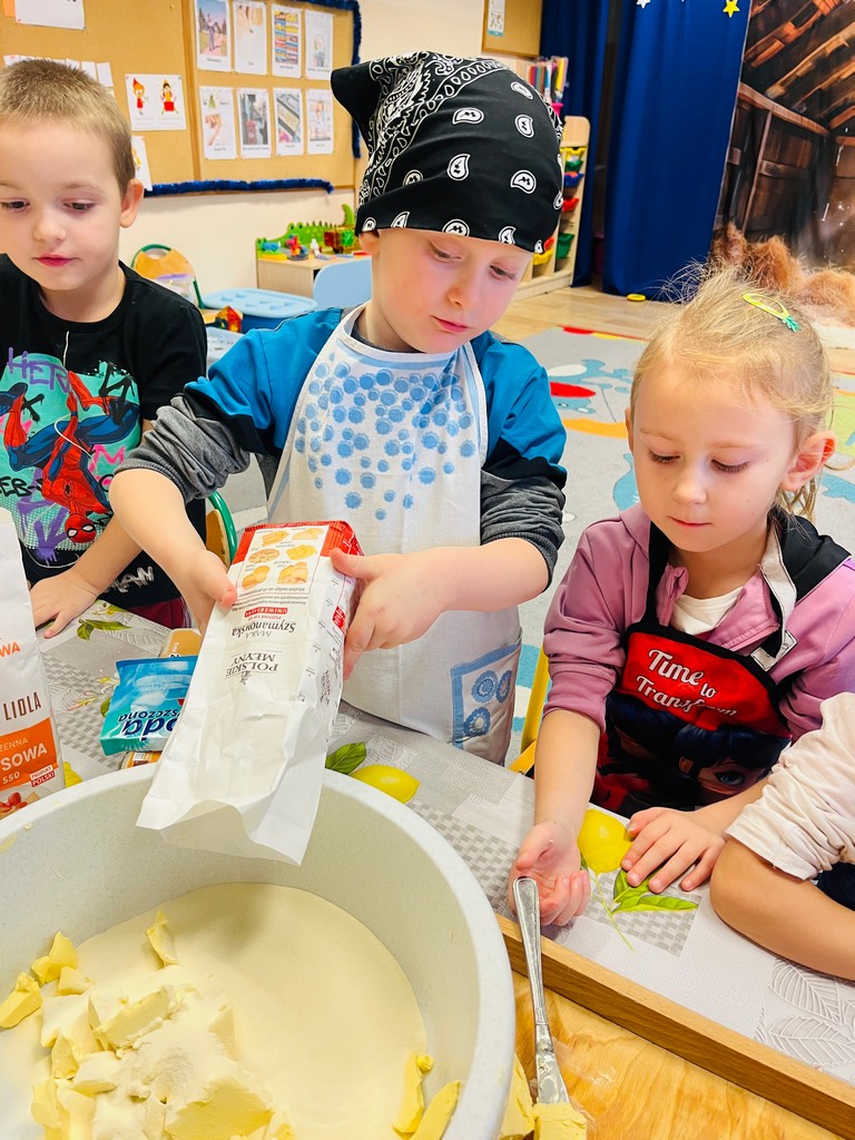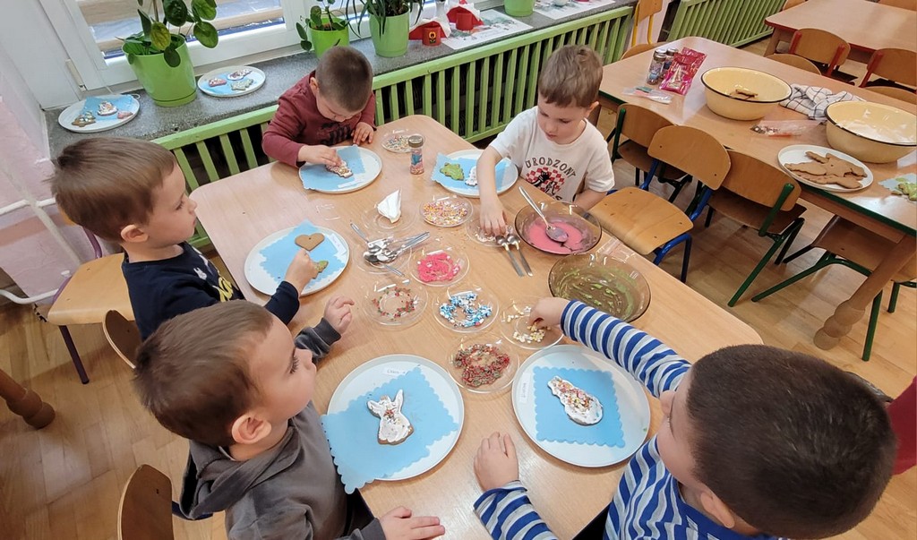 Przedszkolaki wałkowały ciasto, wykrawały pierniki w różnych kształtach oraz poznawały tajniki przygotowywania świątecznych wypieków. Nie zabrakło także dekorowania ciasteczek kolorowymi lukrami i posypkami.