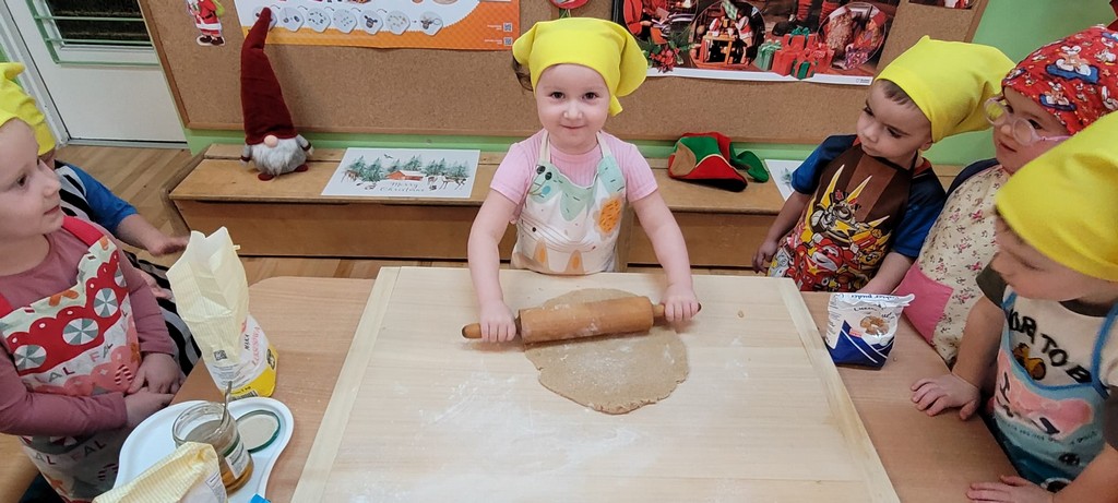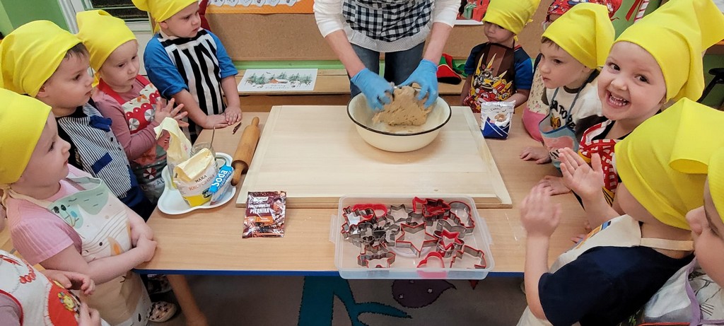 Upieczone przez dzieci pierniki znalazły się później na naszych przedszkolnych wigilijnych stołach. Mniam!