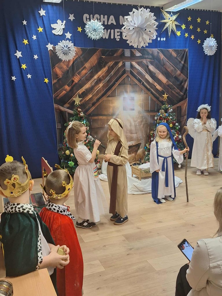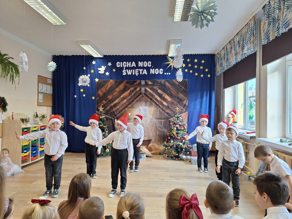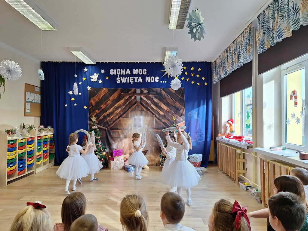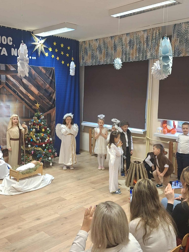 Szczególnym wydarzeniem były występy przedszkolaków dla rodziców. Dzieci z ogromnym zaangażowaniem zaprezentowały wiersze, piosenki oraz tańce o tematyce świątecznej. Grupy Sówek i Kangurków przedstawiły wyjątkowe jasełka. Był to piękny czas wspólnego przeżywania emocji i dumy z małych artystów.