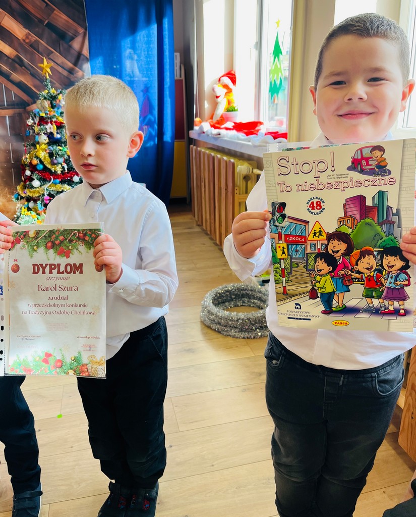 W środę odbyło się także wręczenie nagród laureatom konkursu na świąteczną ozdobę tradycyjną. Wszystkie dzieci otrzymały pamiątkowe dyplomy i upominki, a ich dzieła zdobią teraz przedszkolną choinkę.