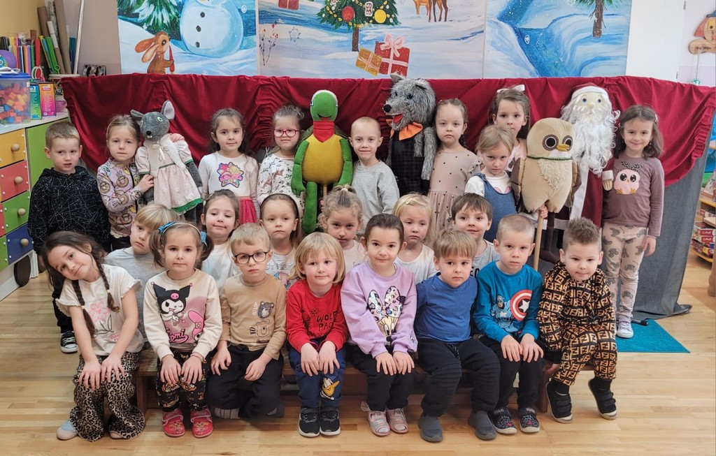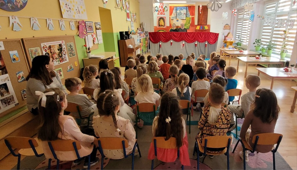 W ramach przedświątecznych wydarzeń dzieci obejrzały także spektakl teatralny pt. „Opowieść wigilijna”. Przedstawienie w przystępny sposób przybliżyło wartości takie jak dobroć, wrażliwość i pomaganie innym, wzbudzając duże zainteresowanie wśród przedszkolaków.