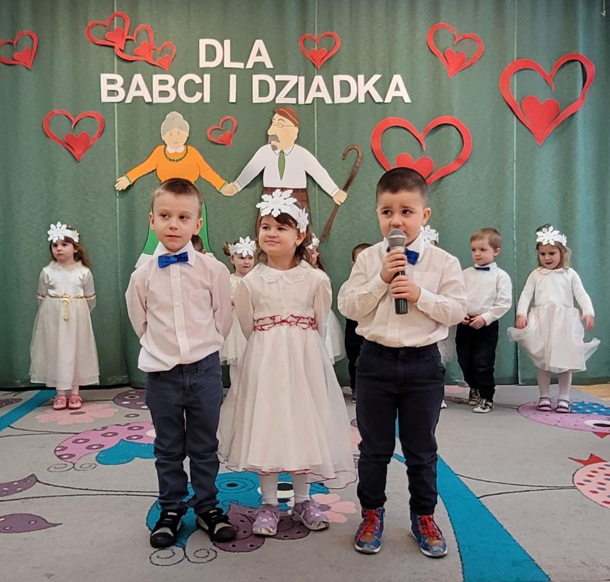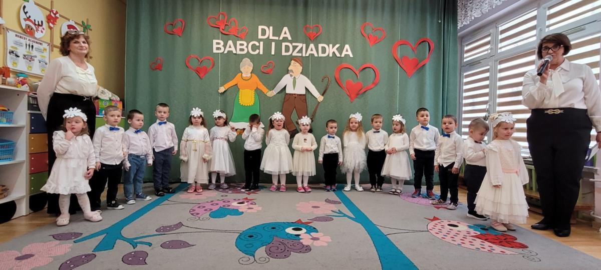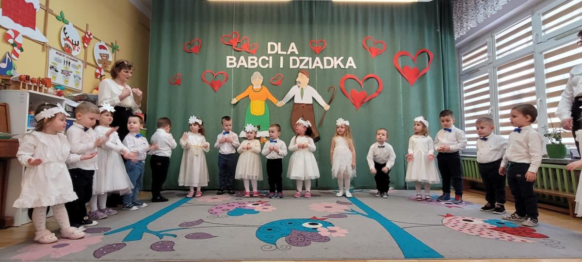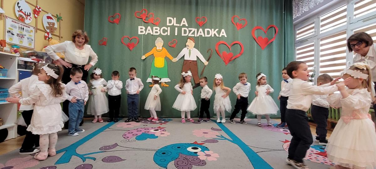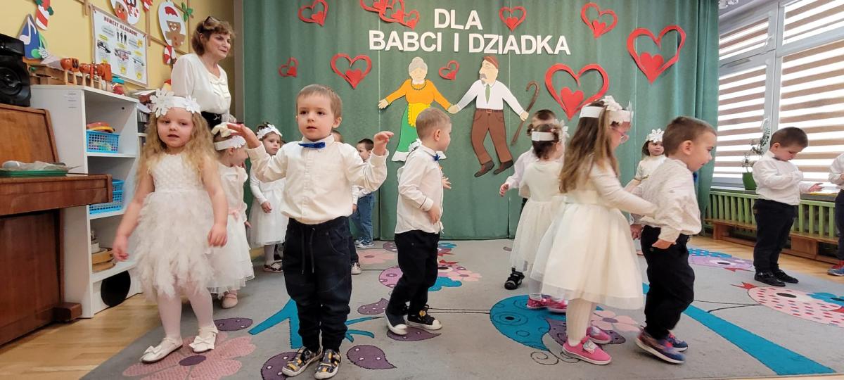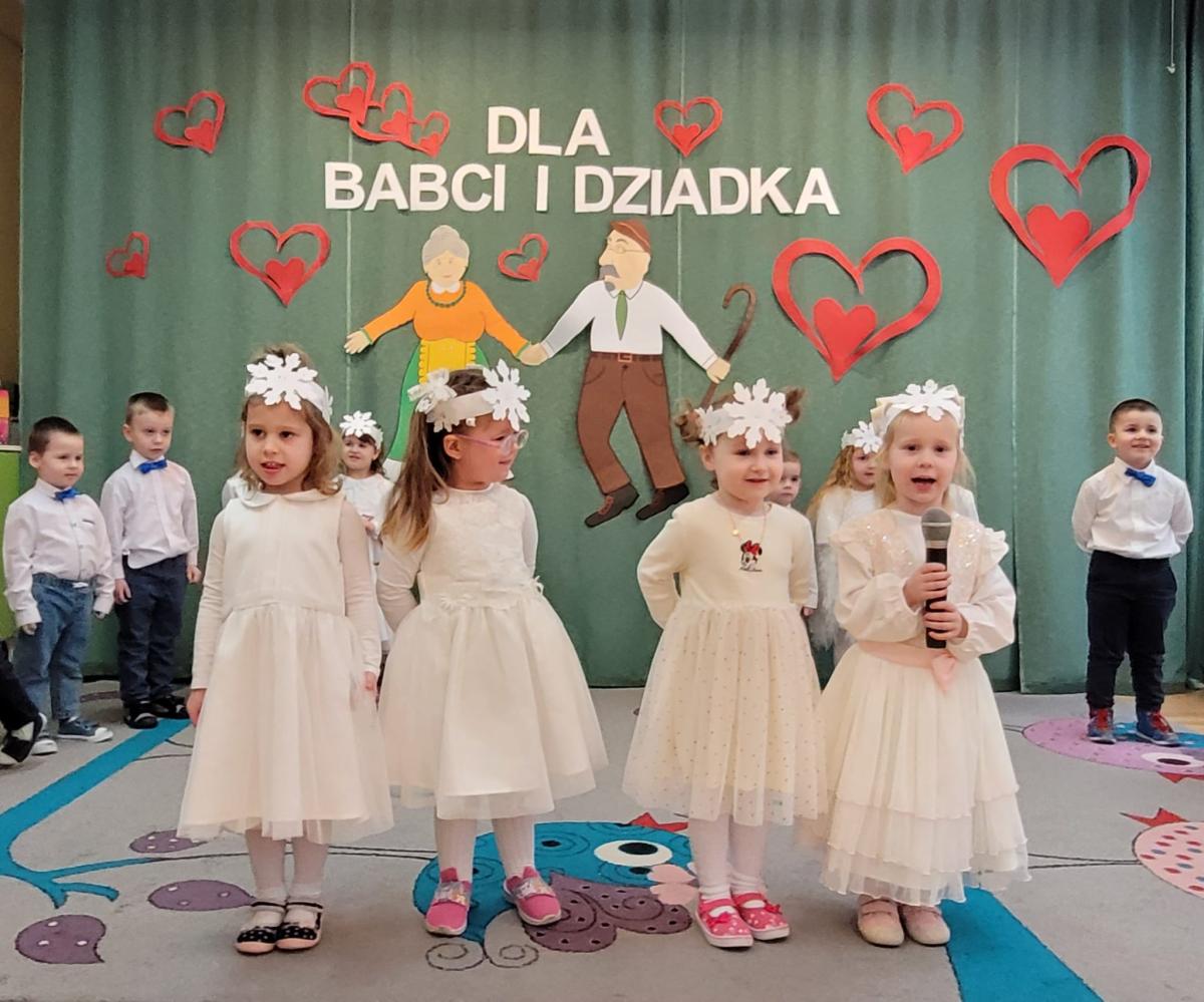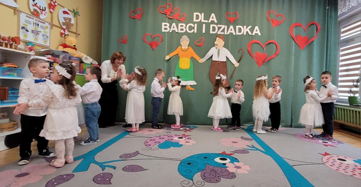 Także nasze najmłodsze przedszkolaki przygotowały wyjątkowy występ z okazji Dnia Babci i Dziadka. Dzieci z wielkim zaangażowaniem recytowały wierszyki, śpiewały piosenki i tańczyły, sprawiając swoim bliskim ogromną radość. Na koniec każde dziecko wręczyło swoim gościom prezenty i złożyło najlepsze życzenia.