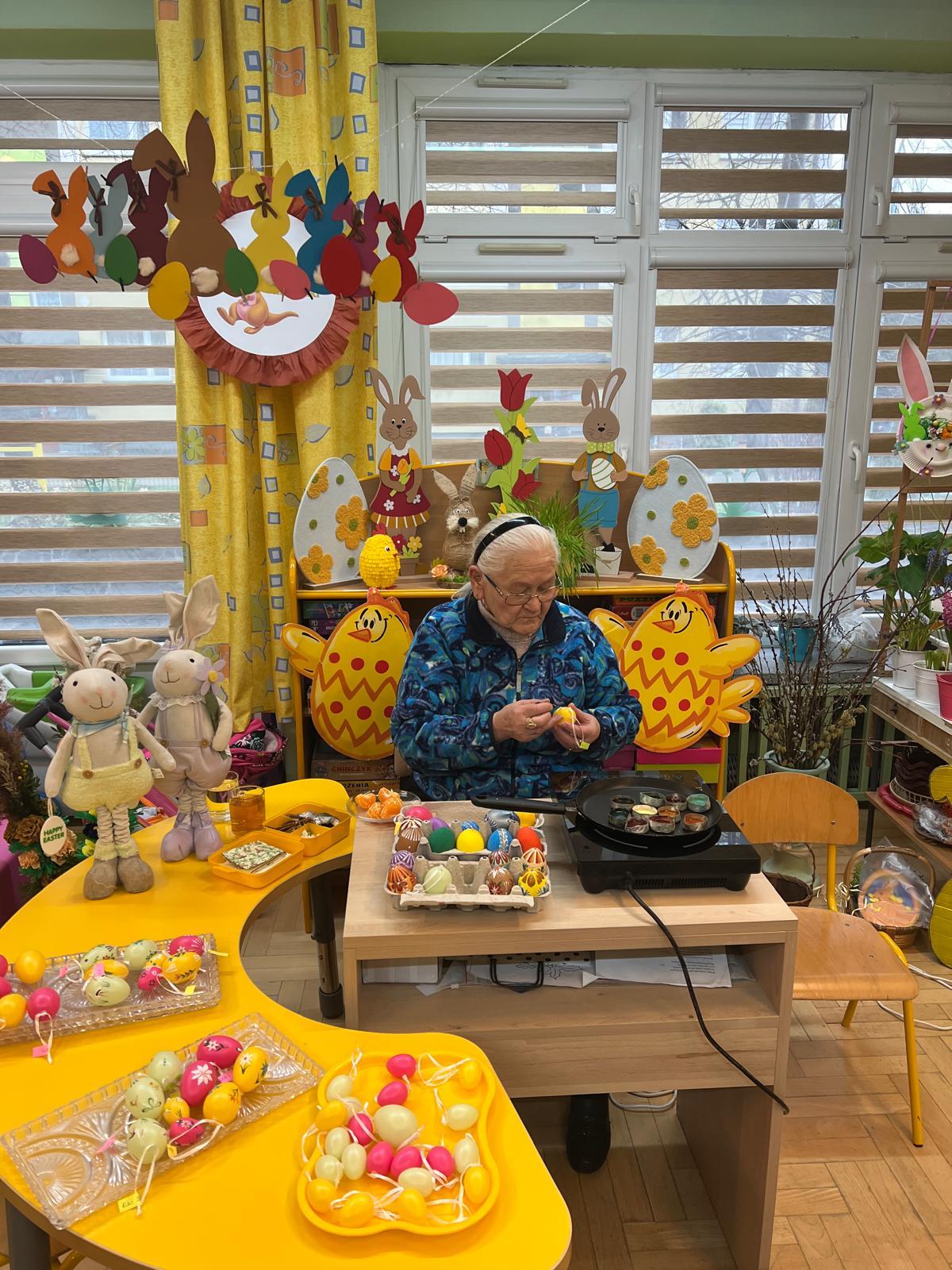 Największą atrakcją były warsztaty praktyczne, w których dzieci poznały kolejne etapy tworzenia kolorowych pisanek.Pod czujnym okiem artystki przedszkolaki poznawały różne techniki zdobienia – od prostych wzorów po bardziej skomplikowane motywy ludowe. Spotkanie rozwijało kreatywność, cierpliwość oraz zainteresowanie tradycją.